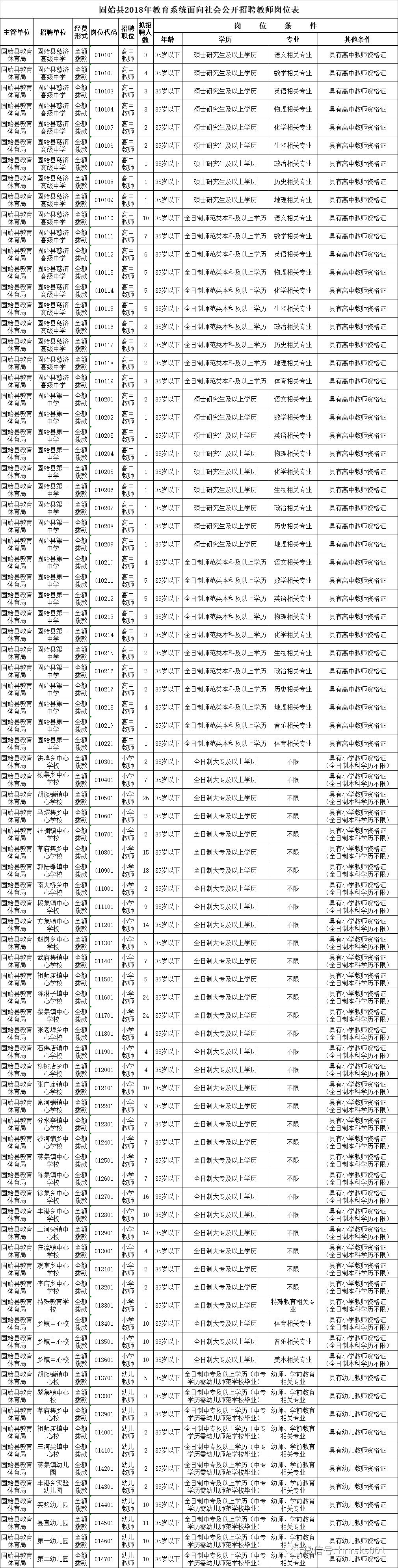4.高中教师要求第一学历为普通全日制师范类本科及以上学历,同时具有高中教师资格证;小学教师要求普通全日制大专以上学历,同时具有小学及以上教师资格证,普通全日制本科以上学历人员不限教师资格证(未取得教师资格证的本科生在试用期一年内需取得相应学科教师资格证);幼儿教师要求具有普通全日制中专以上学历(中专学历需幼儿师范学校毕业),同时具有幼儿教育教师资格证;